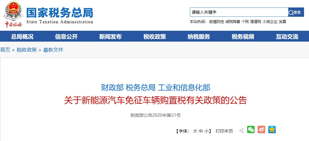 税务总局发布有关免征车辆购置税政策的新公告!增值税政策也变了!