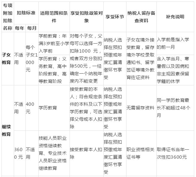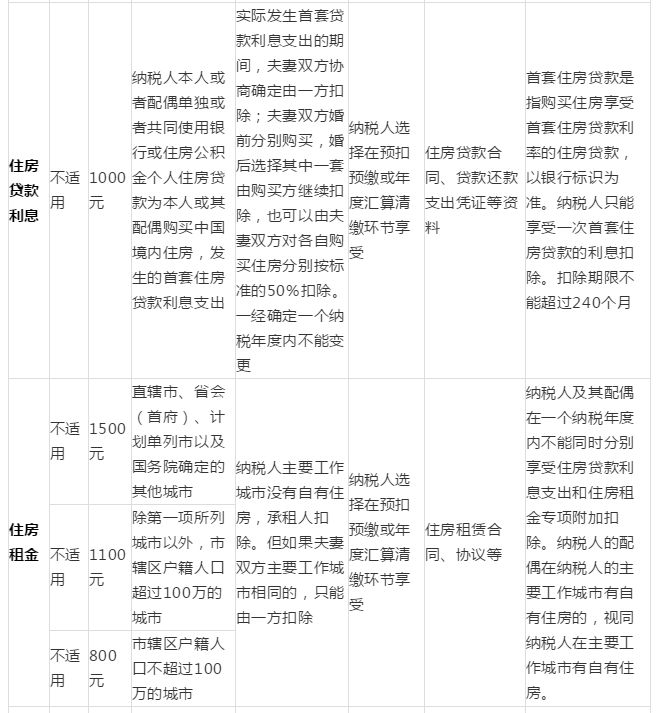 10、本表摘自《国务院关于印发个人所得税专项附加扣除暂行办法的通知》(国发〔2018〕41号)和《国家税务总局关于发布《个人所得税专项附加扣除操作办法(试行)》的公告》(国家税务总局公告2018年第60号)。