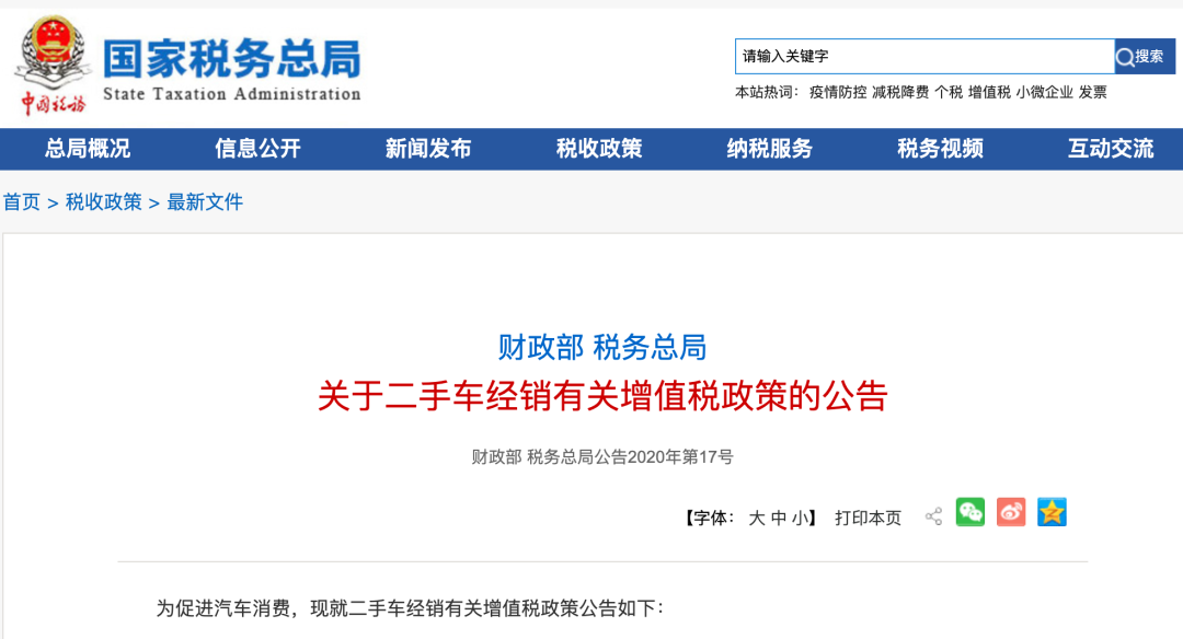 根据财政部、税务总局关于二手车经销有关增值税政策的公告(财政部 税务总局公告2020年第17号),自2020年5月1日至2023年12月31日,从事二手车经销的纳税人销售其收购的二手车,由原按照简易办法依3%征收率减按2%征收增值税,改为减按0.5%征收增值税。