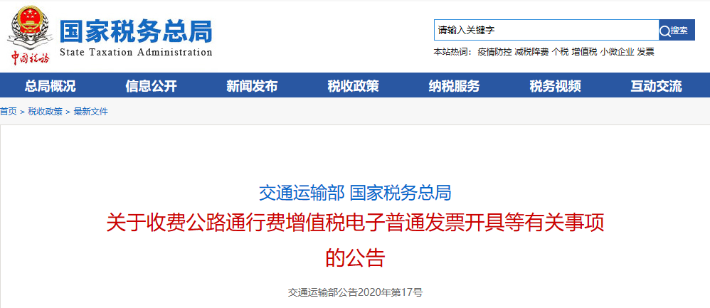 交通部发布《交通运输部 国家税务总局关于收费公路通行费增值税电子普通发票开具等有关事项的公告》,公告对收费公路通行费增值税电子普通发票(以下简称通行费电子发票)开具等有关事做出了具体说明,新规将于4月1日起正式实施。