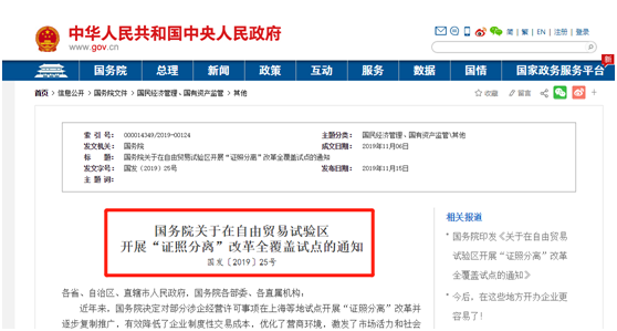 取消审批!自2019年12月1日起,上海、广东、天津、福建、辽宁、浙江、河南、湖北、重庆、四川等多地自由贸易试验区将施行“证照分离”,直接取消审批,改审批为备案。